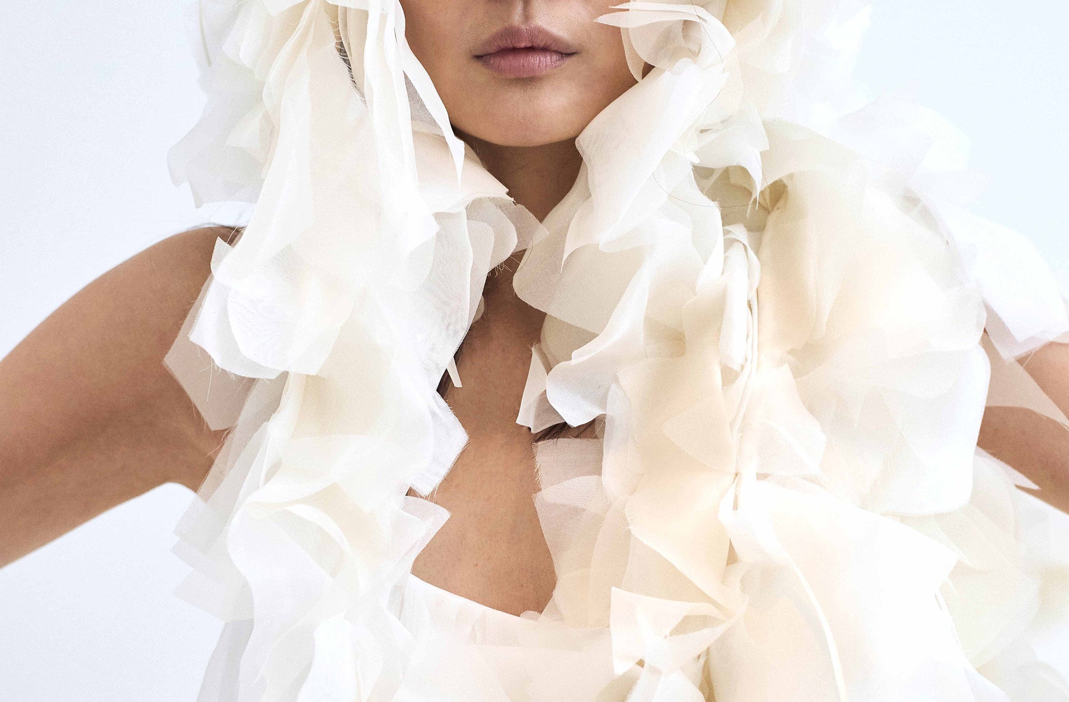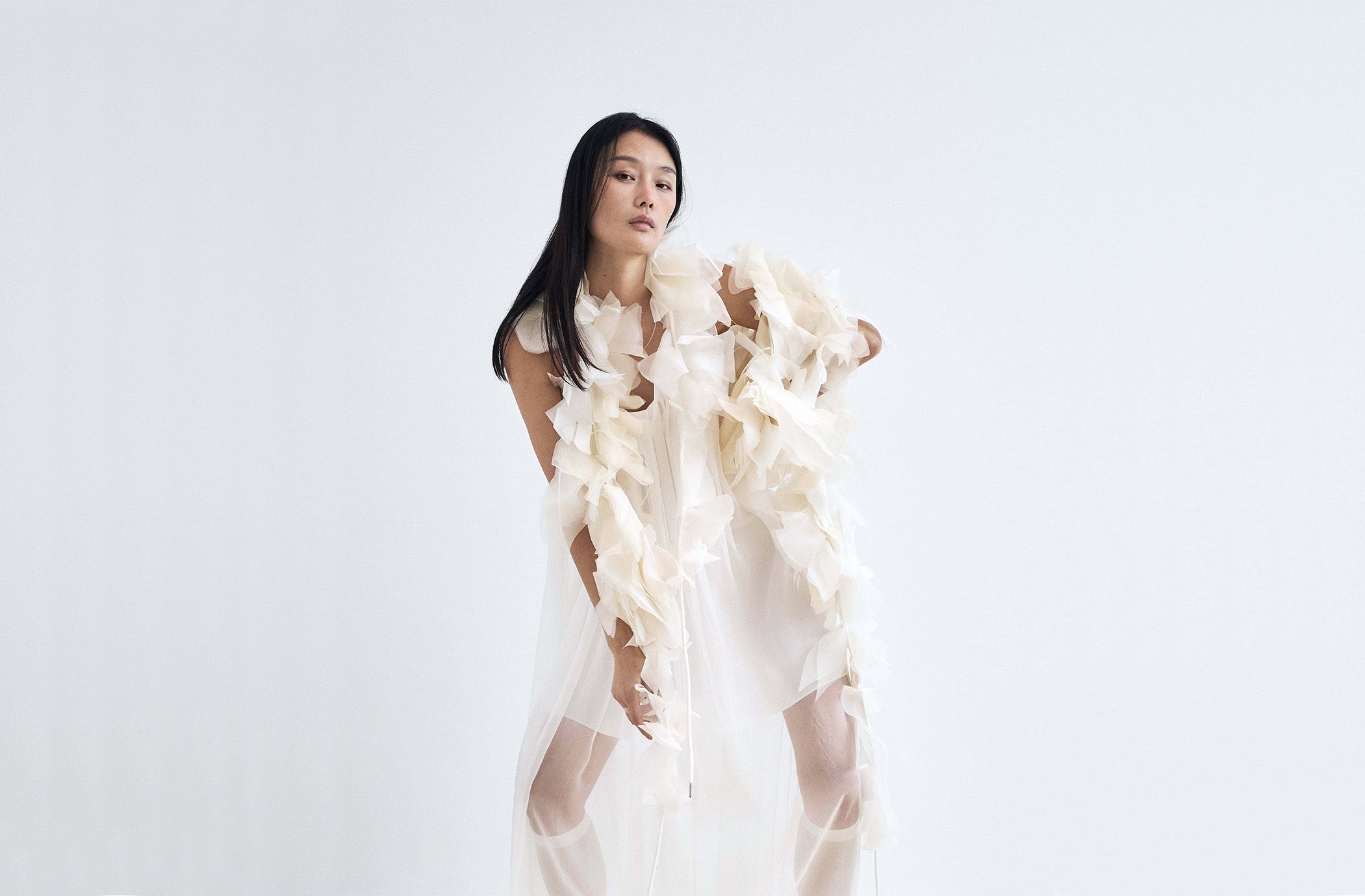NYMPHE LEAF ivory and white silk