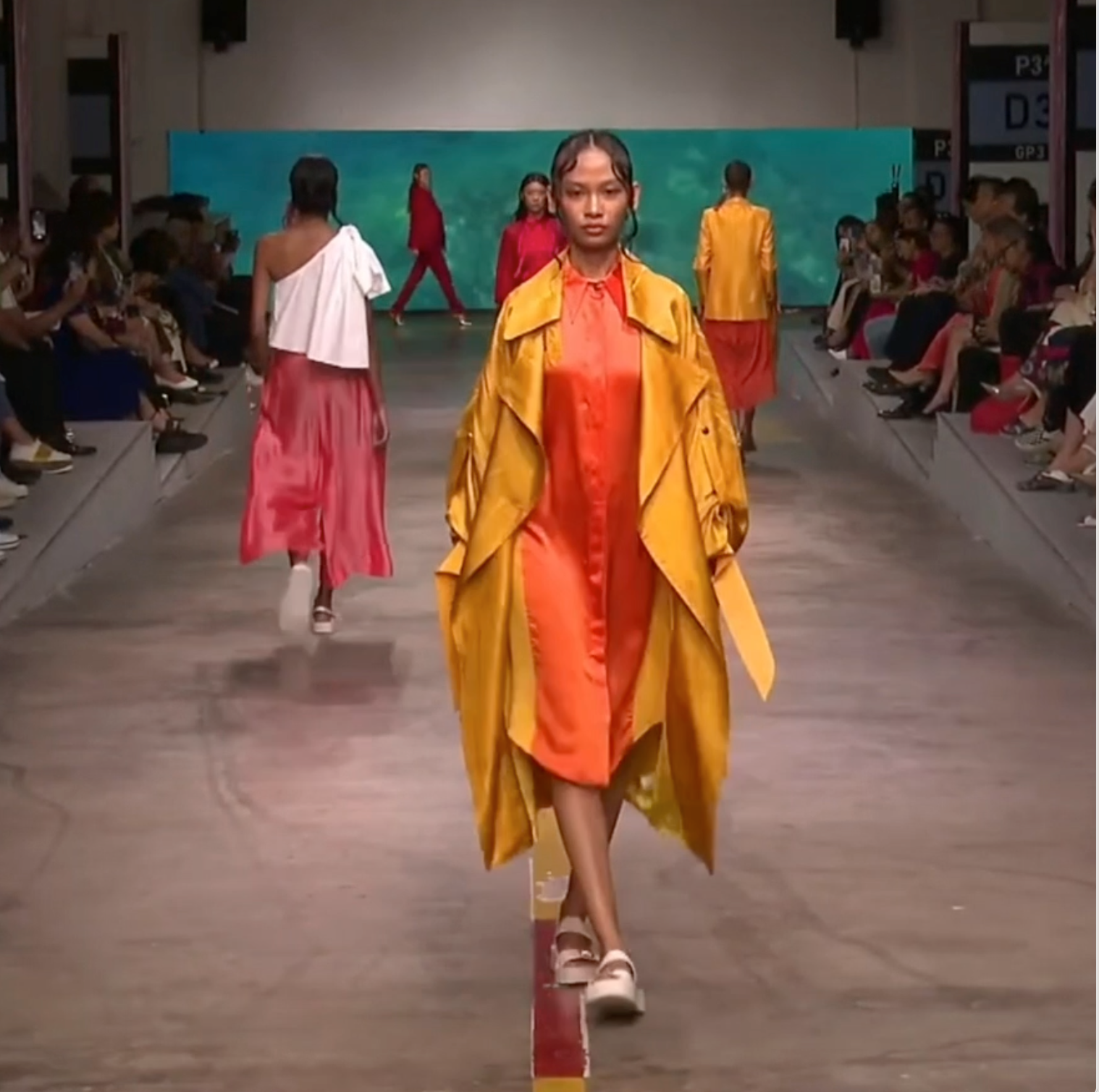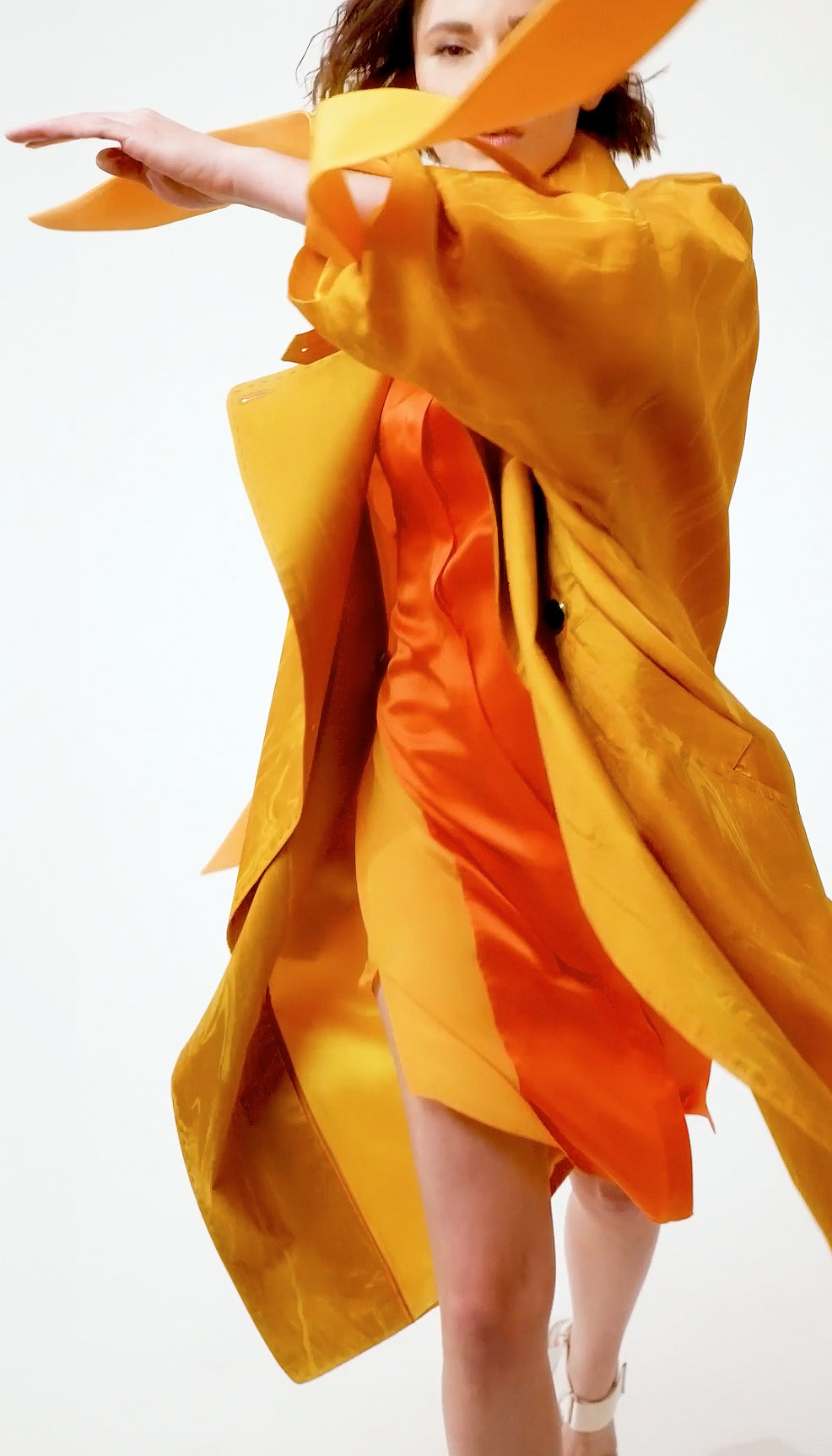 LINQ yellow marble - silk oversize fluid coat