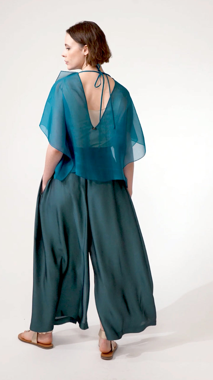 PABLO 앤틱 블루 - 실크 비스코스 컴포트 팬츠